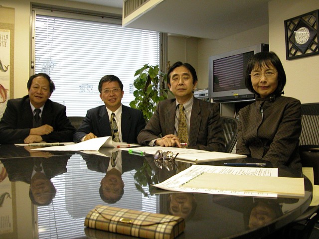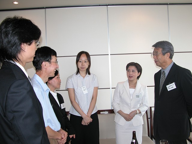 2006年度ウシオ奨学金合格授与式にて、 牛尾理事長(故)、張麗玲と中国人奨学生達 |